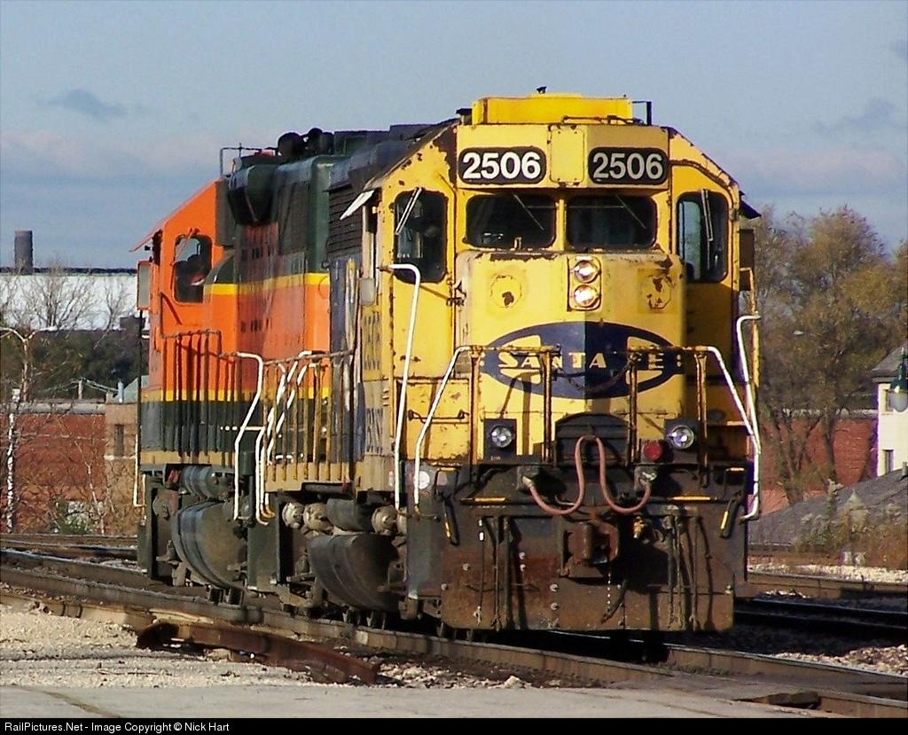 ATSF (SF) 2506 GP35 goes light through Joliet with a BNSF H1 GP38-2.
