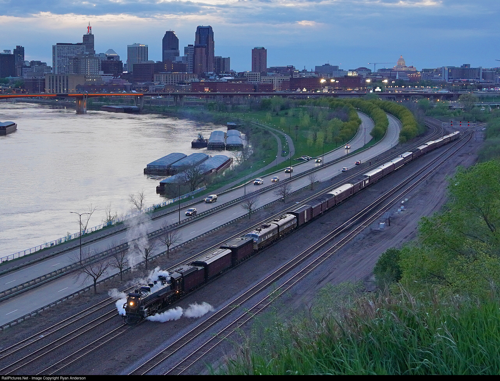 | CP 2816 "Empress" passes Dayton's Bluff after being on public display at Union Depot in St. Paul, MN. |