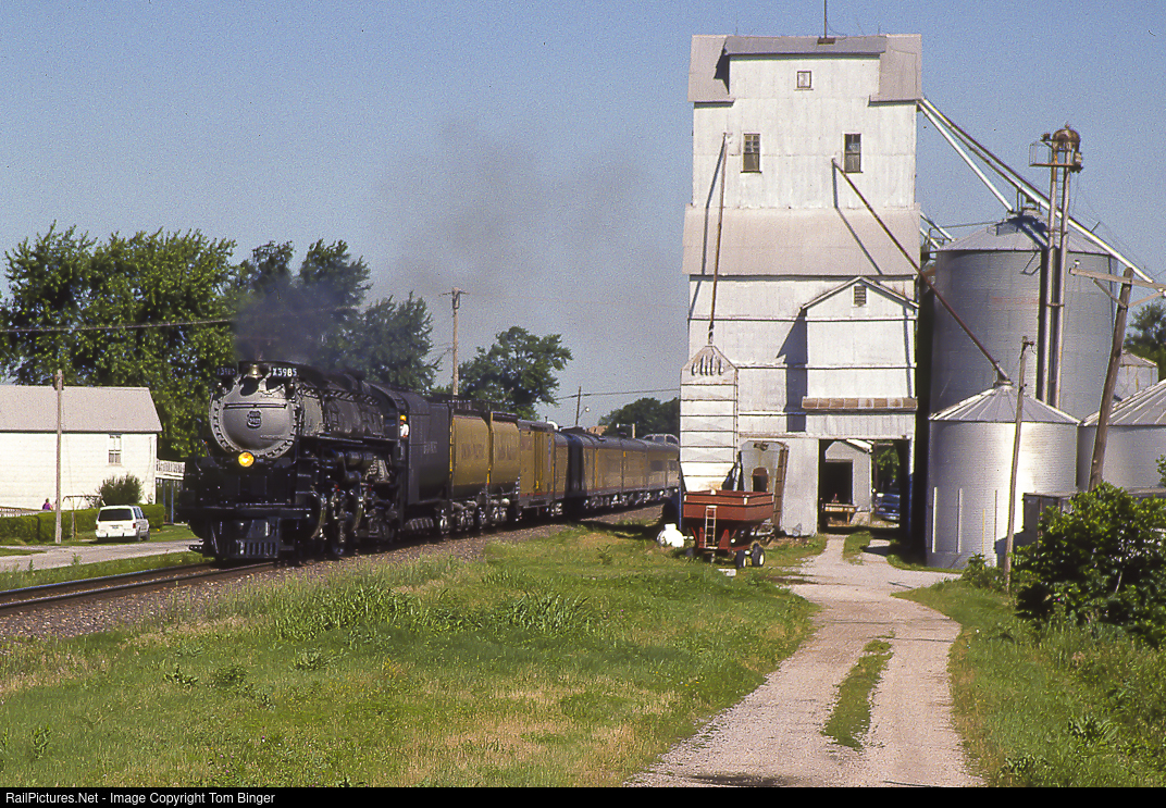 | The Union Pacific brought Challenger #3995 to the 2001 NRHS convention hosted by the St. Louis Chapter NRHS, shown here enroute to St. Louis. The convention paid homage to the 150th anniversary of the Pacific Railroad, the first railroad west of the Mississippi and now a component of the Union Pacific. |