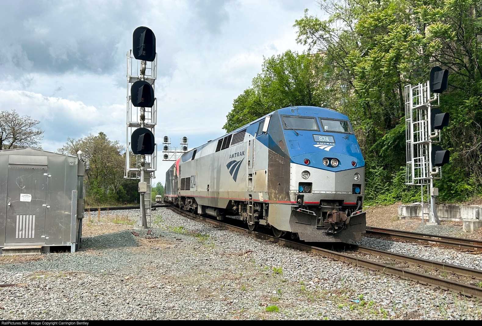 | Northeast Regional #156 crossing through the interlocking with the Buckingham Branch Railroad. It is approaching the Charlottesville Union Station platform where a large group of passengers will soon board. |