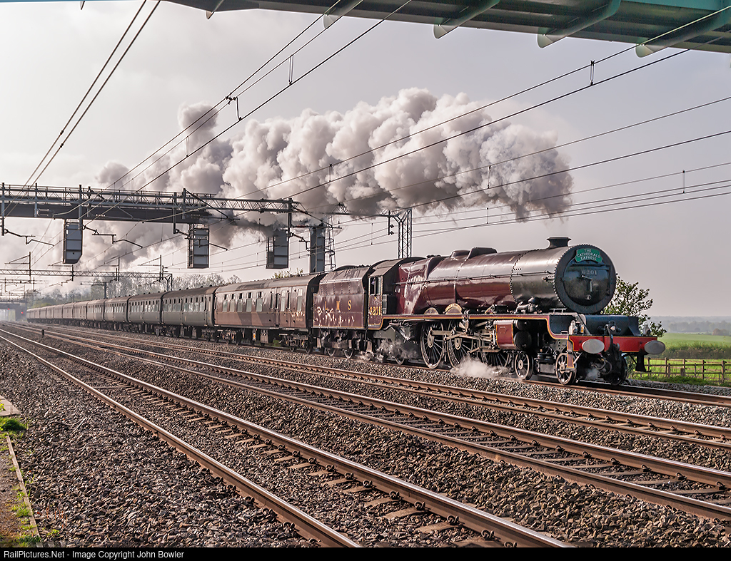 | LMS 6201 'Princess Elizabeth' storms up the gradient from Rugby with the 1Z90 0739 'Cathedrals Express' London Euston - Chester. Stock: