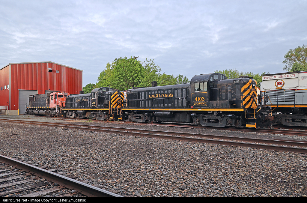 Early morning at Green Ridge. A pair of former Delaware & Hudson RS-3 in their as delivered inspired livery sit behind the Von Storch shop. It has been a busy week here at Green Ridge: this pair, as well as three of the ex WNYP, exx NYSW,