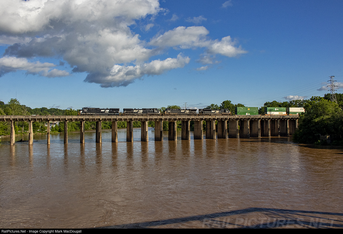 28R crosses the Dan River with four engines on the head end.