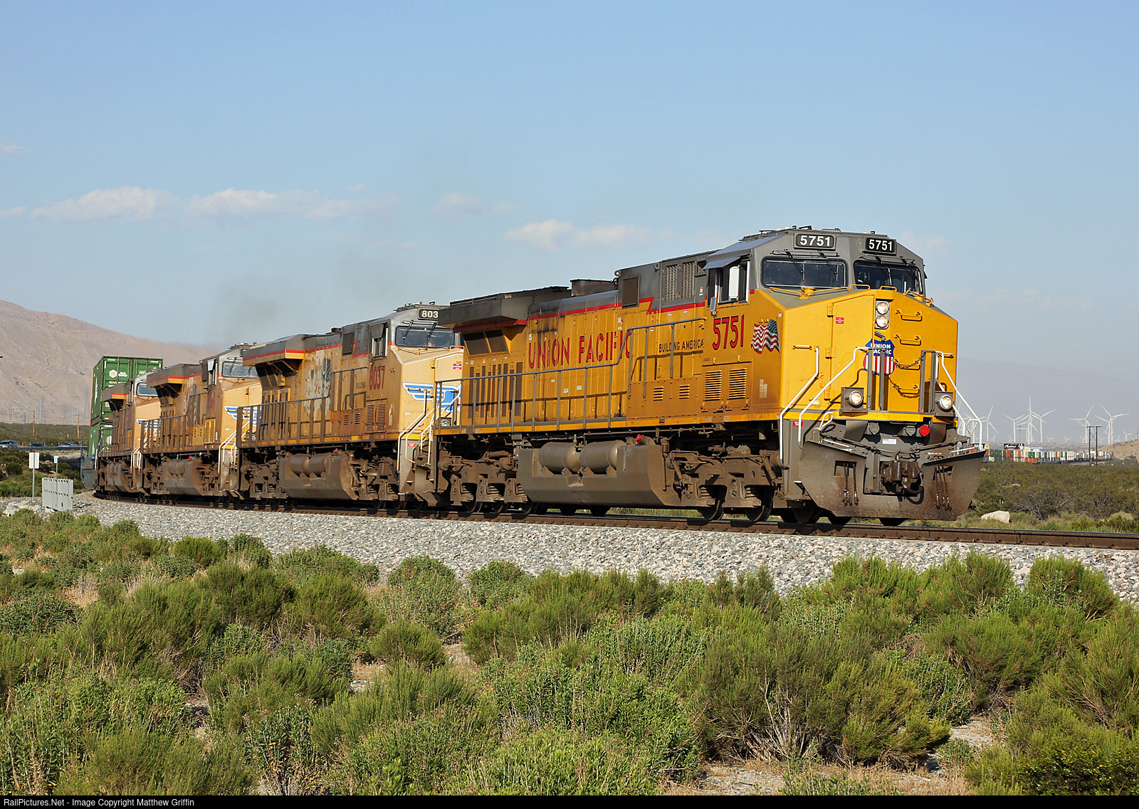Late afternoon between Fingal and Cabazon finds UP 5751 leading an eastbound Z train.