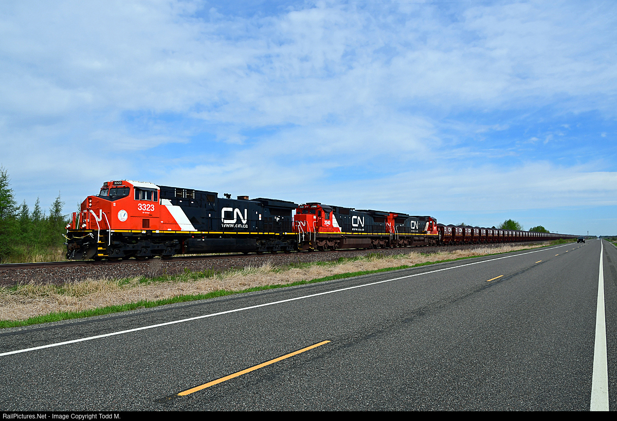 | CN 3323's first trip in ore service since a rebuild plus having a straight air system installed and with the shiny new ore cars trailing behind fully loaded with iron ore pellets from United Taconite it's time to head back down the CN Missabe sub for Proctor. Like it or not, this will be the face of the former Missabe and the future of CN's ore pool. |