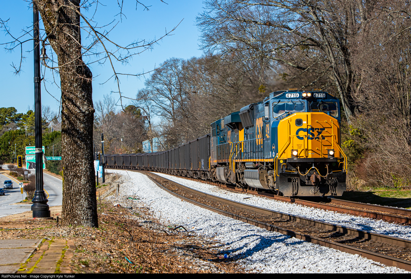 | CSXT #4719 leads Birmingham, AL bound coal train C351 south through Smyrna, GA after meeting northbound I197 |