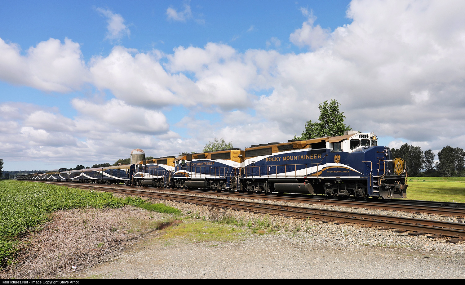 RailPictures.Net Photo: RMRX 8015 Rocky Mountaineer Railtours EMD GP40-2L(W) at Matsqui, British Columbia, Canada by Steve Arnot