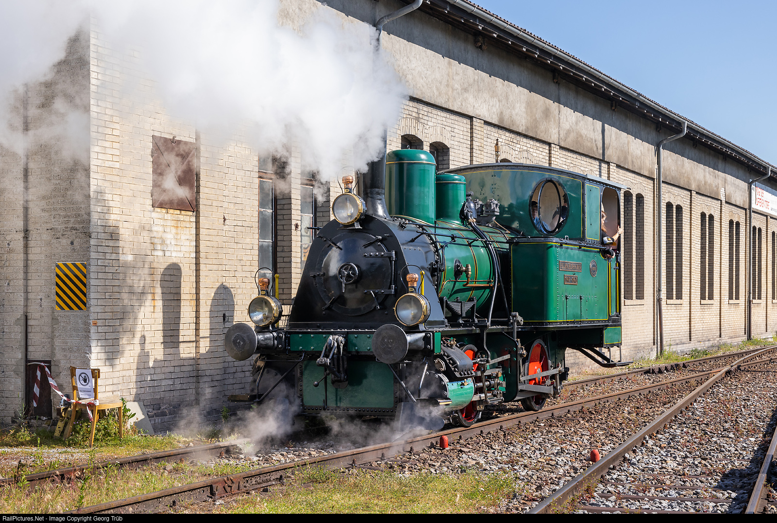 0-4-0 T shunting locomotive E 2/2 named "Chnurrli", no number, but work number # 5966 of Krauss and Cie, Munich and Linz, 1907. Served for the Feldschlösschen brewery Rheinfelden till 1994 and was exhibted since 1997 on the Feldschlösschen area. Made operational by the steam group Zürich in 2009. During the open doors days 2024 in the Railway Park Brugg AG, there were cab rides with this locomotive.