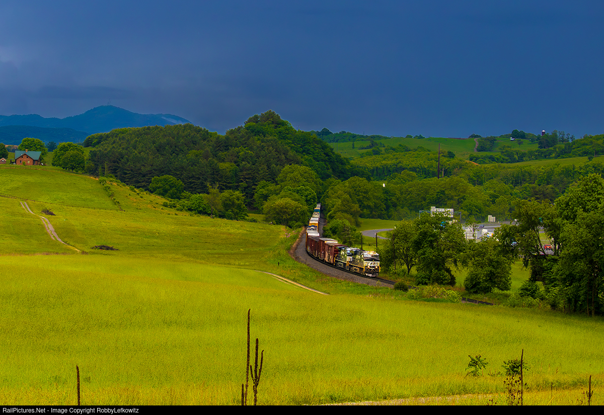 Stormin South: NS 8000 leads southbound manifest NS 13Z through Wytheville, Virginia, along the NS Pulaski District, as it breaks away from the strong thunderstorms in the background.