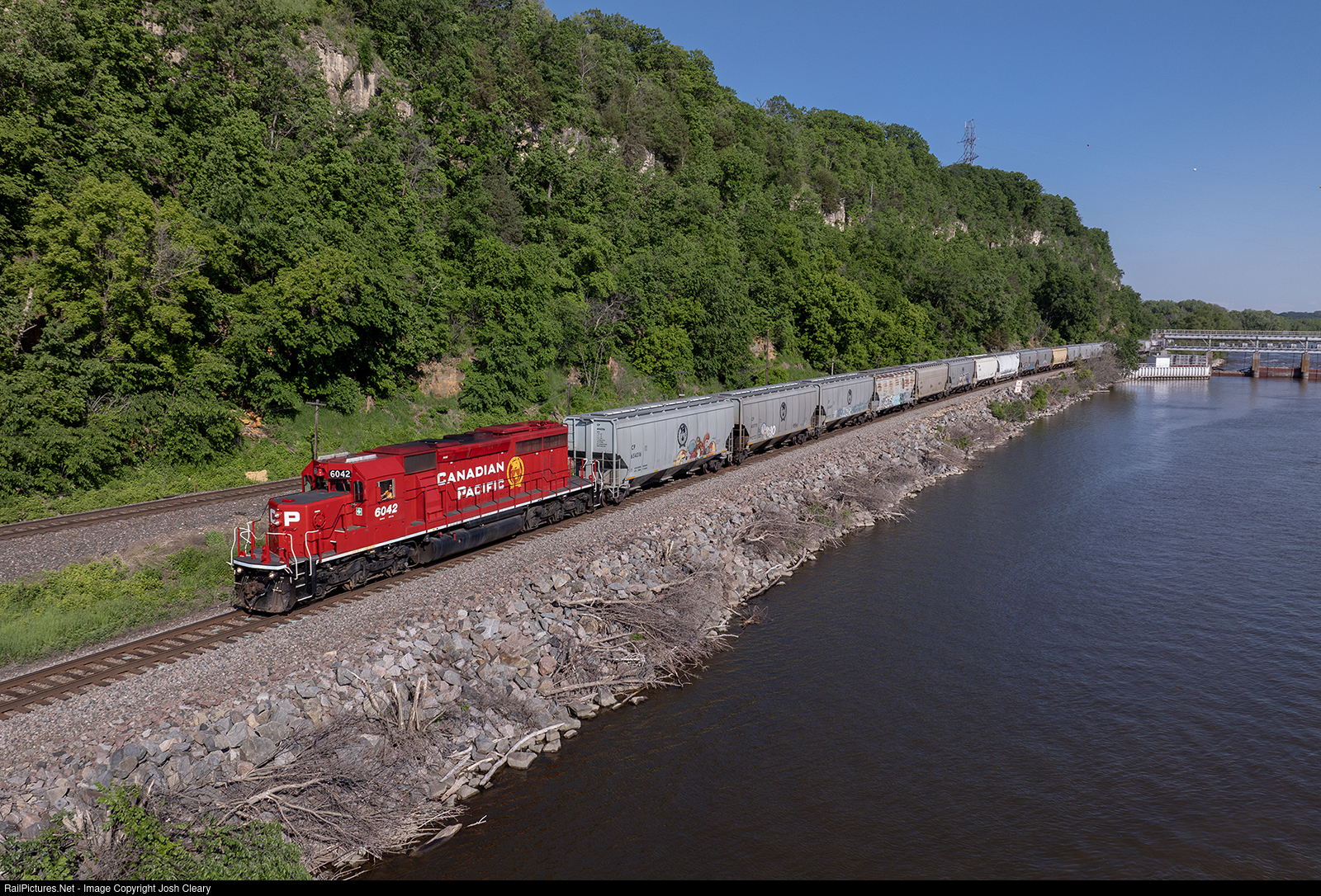 CP 6042 leads J19X out of St. Croix and towards St. Paul Yard. 6042 is still looking good following its 2022 overhaul.