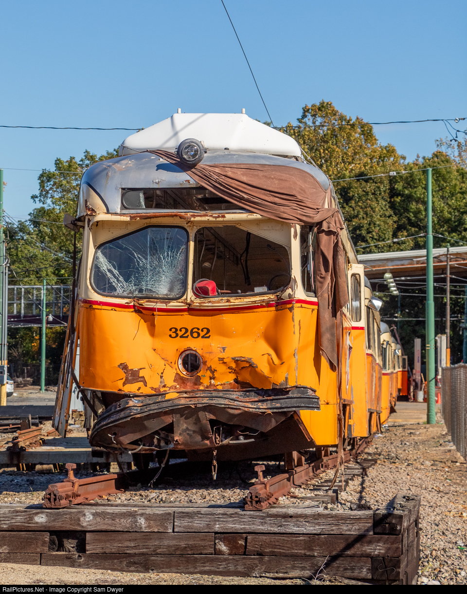 MBTA 3262 was damaged in a collision in 2017 and subsequently placed into storage at Mattapan. It has since been cut up and used to rebuild PCC #3260.