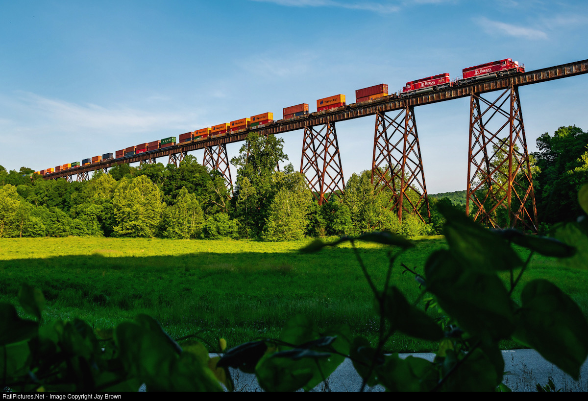 Constructed in 1906, the once upon a time largest rail trestle in the United States, still stands tall well into the 21st century, as its seen here supporting the Indiana Railroad’s SAHW road train. Todays train sporting a pair of SD40s for power.