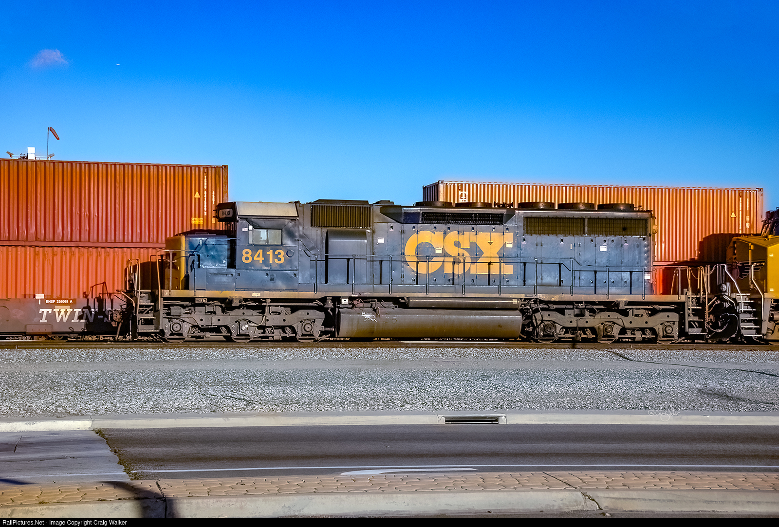 CSX Transportation SD40 8413 is the former Chesapeake & Ohio 7562, originally C&O 7462. Now classed as an SD40-2 thanks to some mechanical upgrades, this locomotive was built by EMD as an SD40 in August 1966, predating the "Dash 2" era. This locomotive is leading a Union Pacific westbound freight into Dolores Yard. (Carson, California - April 8, 2011)