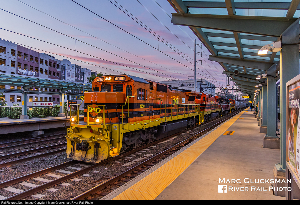 Constant Comment Train. Due to planned track work on the MTA Metro-North Railroad New Haven Line, Genesee & Wyoming's Providence and Worcester Railroad CHFP (Cedar Hill, CT-Fresh Pond, Queens, NY) departed early on the evening on June 1, 2021. PW C40-8 4050 (née-NS 8694) leads the train through the Fairfield Metro Station next to the headquarters of the Bigelow Tea Company. Founded in 1945 by Ruth C. Bigelow, the variety that she marketed as "Constant Comment" tea was based on a recipe for black tea flavored with orange rinds and sweet spices. Today the company sells more than 50 varieties and is still 100% family owned.
