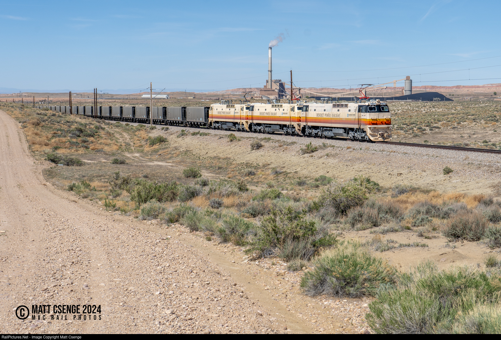 Bonanza Power Plant. Deseret Power Railway (DPR) E60C electric locomotives DPR-1, DPR-2, and DPR-3 are seen leading the morning empty train away from the Bonanza Power Plant, headed back to the loadout in neighboring Colorado. The power plant is slated for closure by 2030, being replaced with a smaller nuclear plan in the same location, almost certainly spelling the end for the railway much like the Black Mesa & Lake Powell.