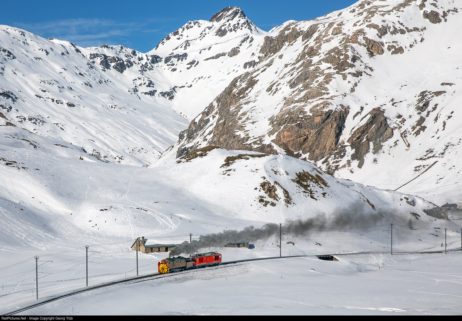 RailPictures.Net Photo: 9213, 802 RhB - Rhätische Bahn Xrot d, Gem 4/4 at Bernina Lagalb, Switzerland by Georg Trüb