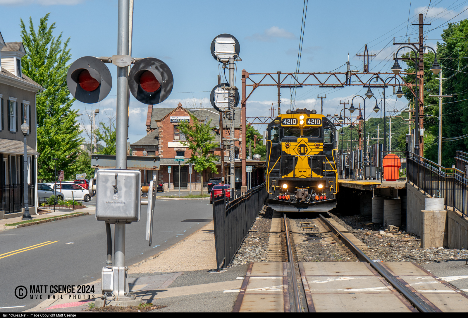 Rumbling steadily at Dover Station is NJ Transit GP40PH-2B no. 4210, discharging the remaining passengers from Montclair-Boonton Line train 1001 before it continues on to Port Morris Yard. The grade crossing had not activated yet despite how close the train was. |