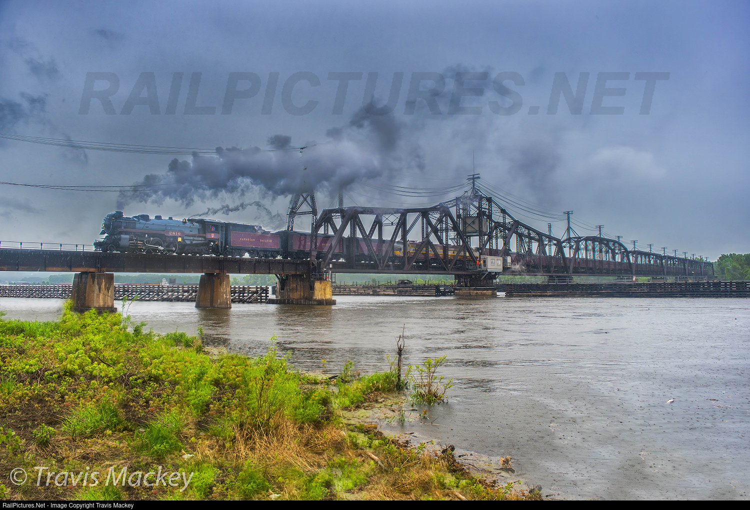 Canadian Pacific 2816 leading the Final Spike Steam Tour across the Mississippi River at Sabula