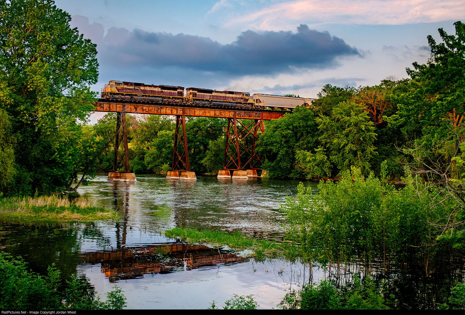 | A pair of consecutively numbered heritage ACUs (7018 and 7019) lead train 243 over the Crow River in Rockford. It's pretty nice in and of itself to get just one of these units leading a train, so seeing 2 was quite the sight to behold! |