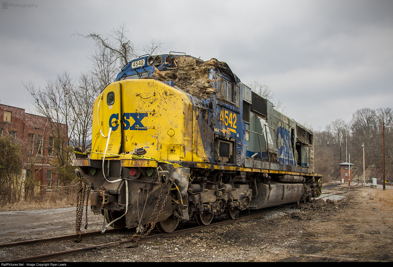 | After striking a rock slide near Gore, WV, CSXT 4542 was brough to the "Gas Track" in Clarksburg, WV. |