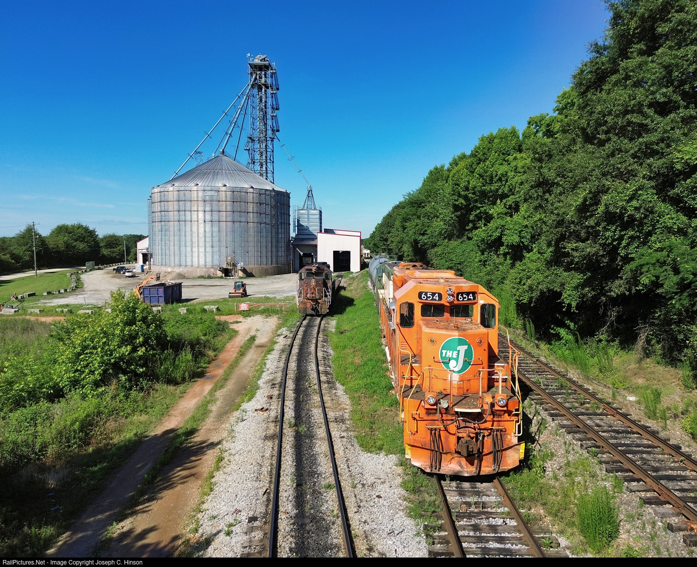 | A former Elgin, Joliet and Eastern Railway EMD sits on the point of a Hartwell Railroad train in need of a crew to take it to the Norfolk Southern interchange in Toccoa. |