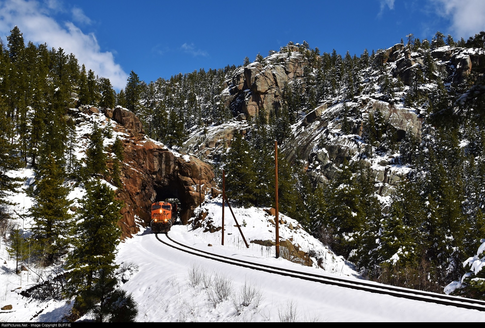 BNSF 5866 (ES44AC) runs through Tunnel #29 at Pinecliffe, Colorado as it heads towards Denver on the Moffat Tunnel Sub.