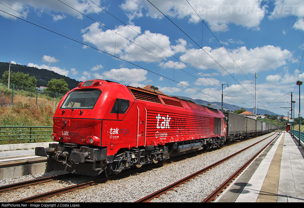 A chartered "Captrain" from Vilar Formoso to Alfarelos pulled by the diesel locomotive Stadler 6003 (ex Takargo) it's leaving Tortosendo railroad station.