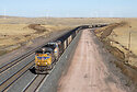 A Union Pacific loaded coal train slowly traverses over the undulating territory of the Powder River Basin between Bill and Douglas, WY.