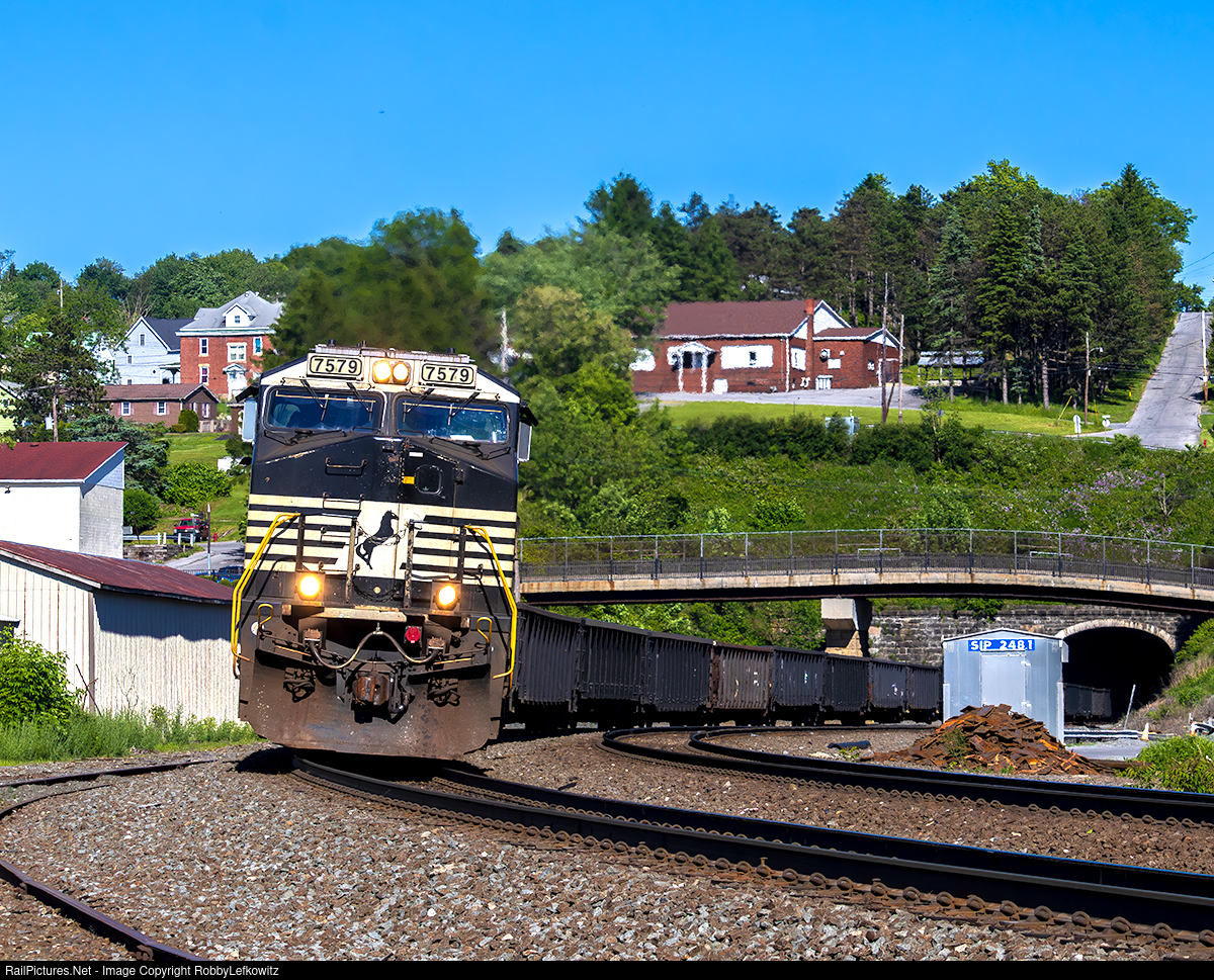 NS 7579 leads a long NS 39G manifest train westbound through Gallitzin, Pennsylvania, along the West Slope of the NS Pittsburgh Line. |