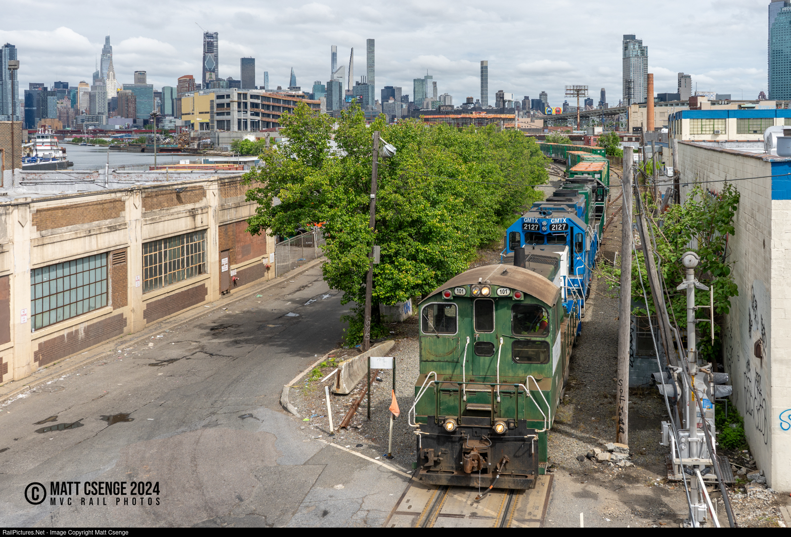 New York & Atlantic SW1001 no. 101 (EMD, 1977) leads train RS-40 out of Blissville Yard and across Greenpoint Ave Outer Rd as it doubles its train in the yard. |