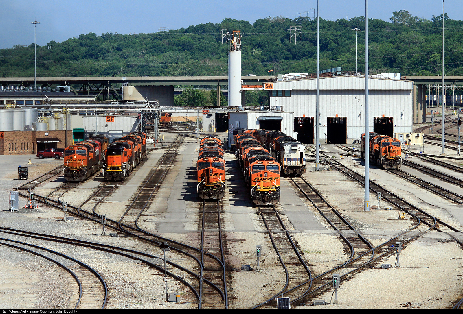 Not only is the diesel shops in the BNSF Argentine yard full of BNSF locomotives, there is also visitors from Ferromex, Norfolk Southern, CEFX and a former MetroLink passenger engine with LETX markings.