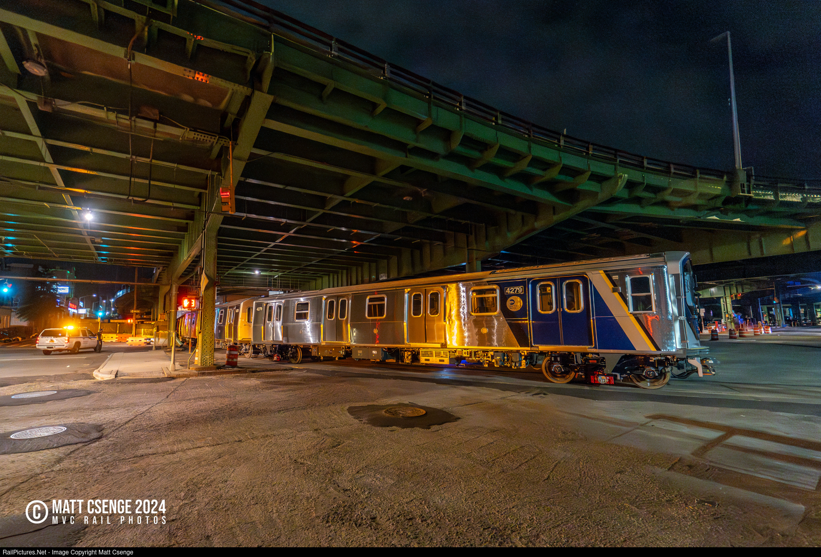 New York City Transit Authority (NYCTA) R211A car no. 4279 is seen rolling under the Gowanus Expressway and across 3rd Avenue. The car was one of five new R211A cars that the TA took delivery of in the small hours of June 11, 2024. |