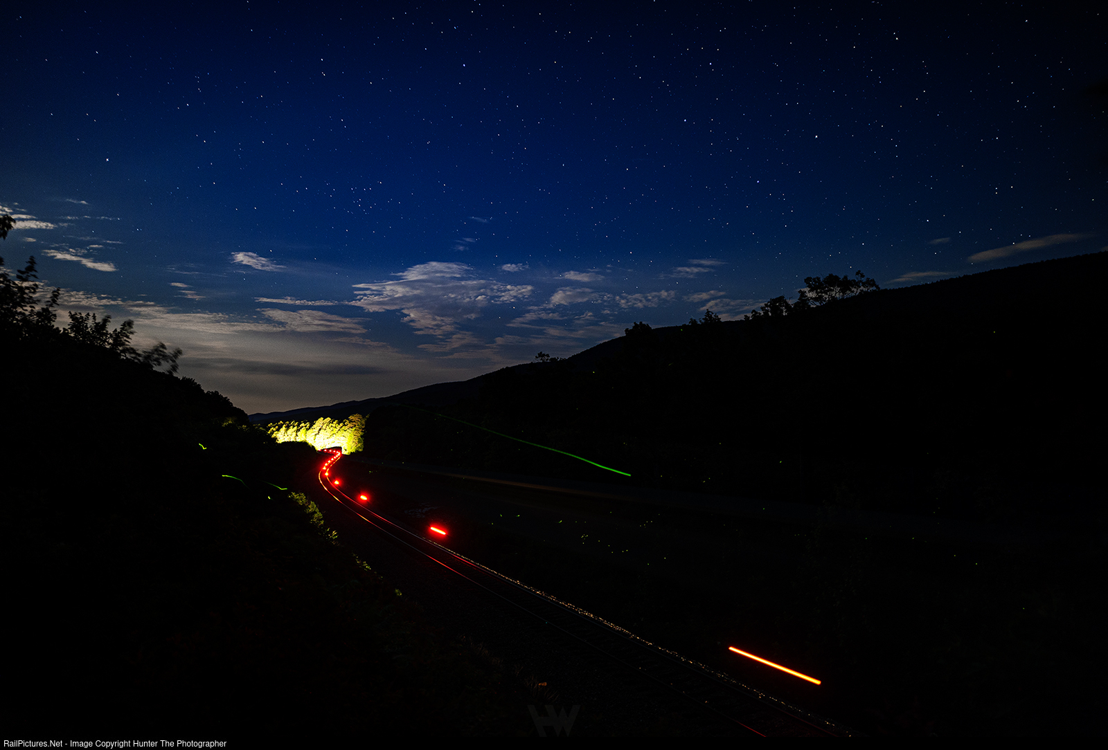 Late Night Lightning Bugs | Lighning bugs are active at Rich Mountain, AR where northbound CPKC manifest train M263 descends the western (timetable north) slope of the grade around 1:30 in the morning on Sunday, June 16, 2024.