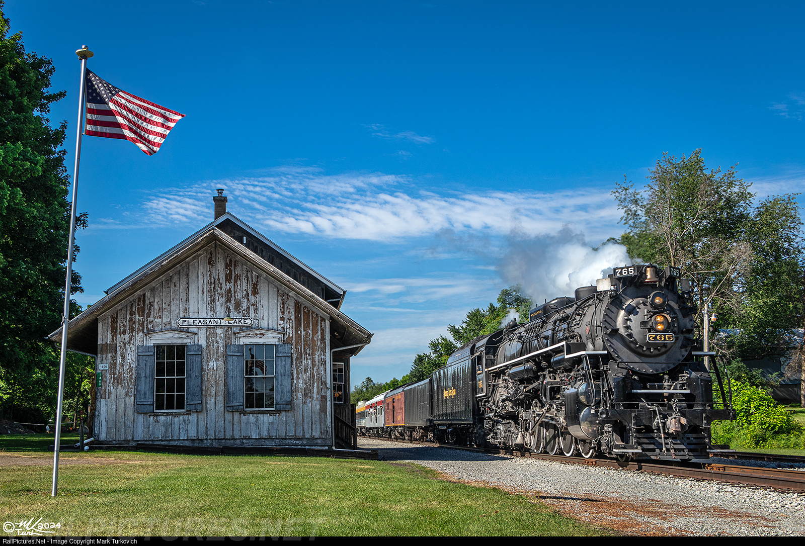 RailPictures.Net Photo: NKP 765 Nickel Plate Road Steam 2-8-4 at Pleasant Lake, Indiana by Mark Turkovich