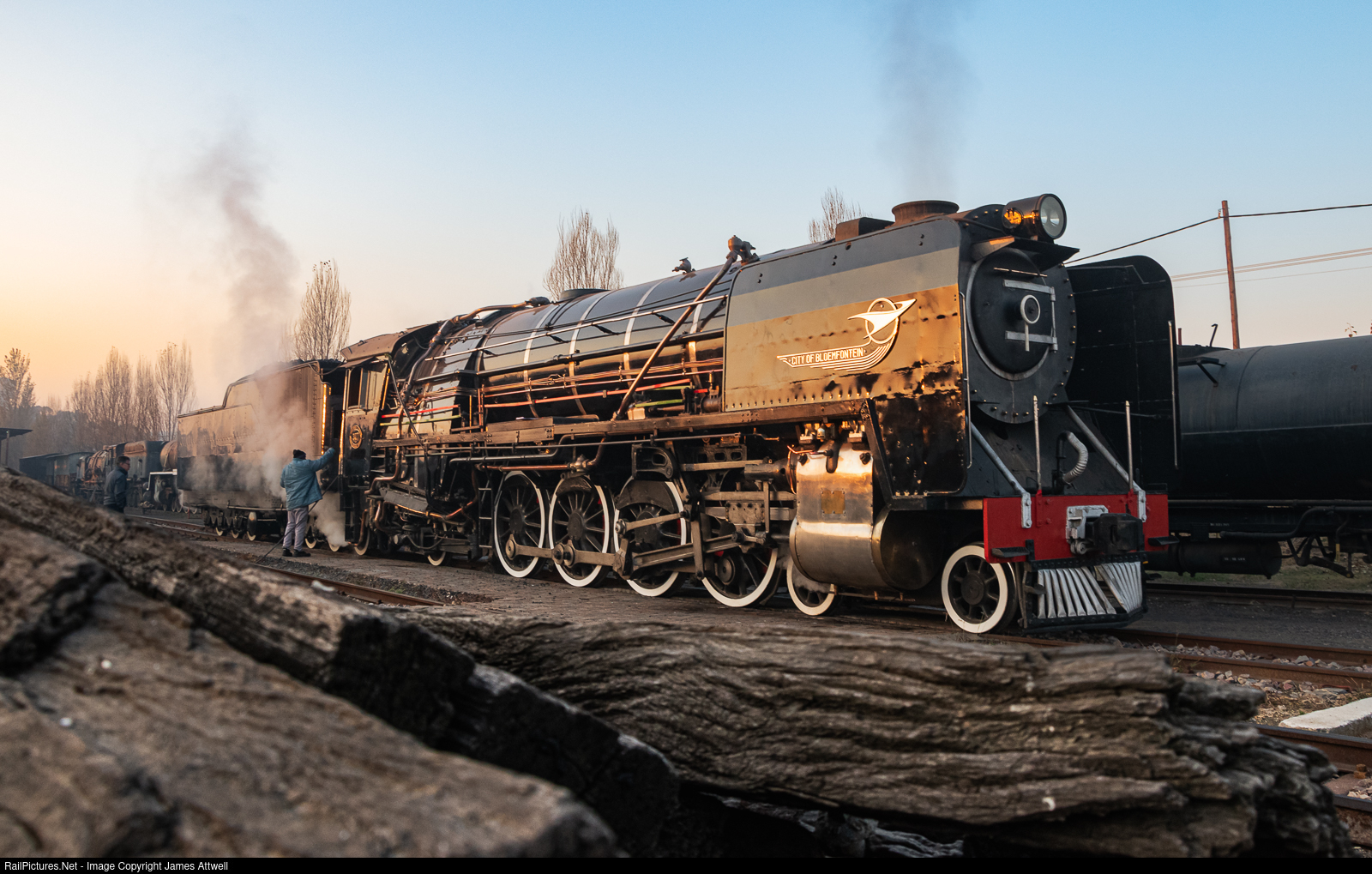 Now, with the first golden rays of the sun illuminating No. 3117, the footplate crew prepares this mighty brute for service later this morning!