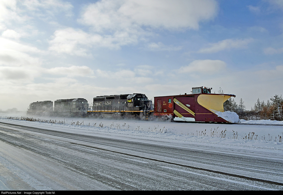 Clearing snow along the CN Missabe Sub with WC 300 and three IC SD40-3s on a short winter day with snow and blustery winds whipping.