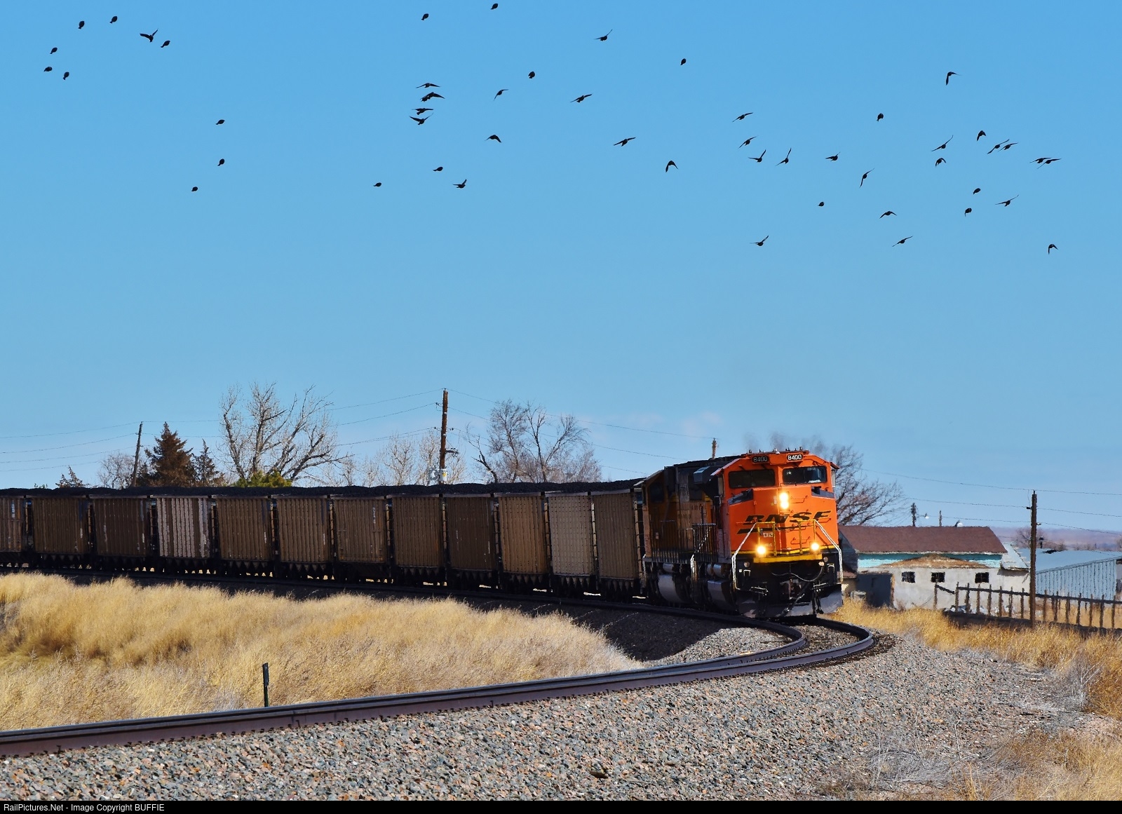 BNSF 8400 (SD70ACe) leads a loaded coal train through the elevated corner at Keenesburg, Colorado.