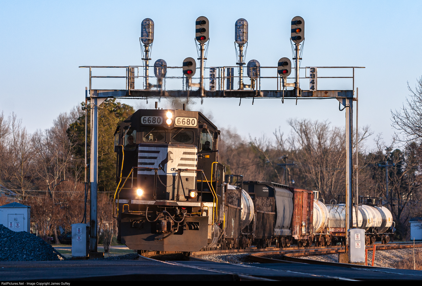 173 tops the grade at Lowell with a very short train. 173 had been a high priority Linwood-Memphis train that picked up a Memphis intermodal block in Charlottes set off by 221, and the two trains would often be close on the heels of one-another south of Charlotte. After 9/11/2001, the trains were often combined as a 173-Combo until the economy improved. By this time in the depths of the Great Recession, 173 was barely hanging on and was usually very short. It was discontinued, reinstated, and discontinued again and today it is hard to catch a southbound train in the afternoon at this location.