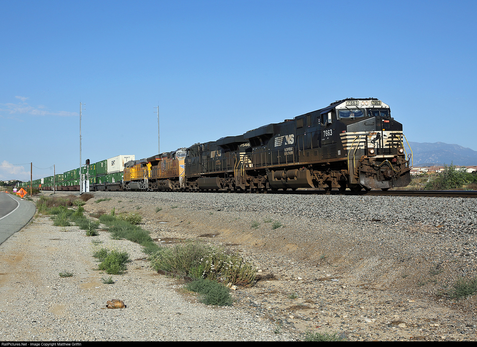 RailPictures.Net Photo: NS 7663 Norfolk Southern GE ES40DC at Beaumont, California by Matthew Griffin
