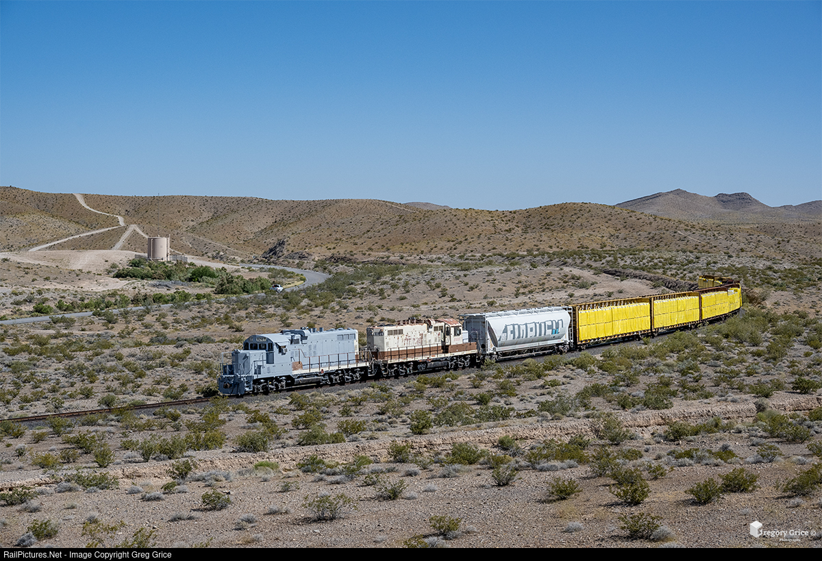 Creative Rail Services' PABCO Gypsum Train operates on Union Pacific's (UP) former 11.5-mile 'Fibreboard Spur.' This line runs between the UP interchange along the Caliente Subdivision in Apex, Nevada, and PABCO Gypsum's manufacturing and mining plant in eastern Las Vegas, Nevada. The railroad utilizes two FarmRail EMD GP10s, FMRC 8267 & FMRC 8180, both of which were in the process of being prepped for repaint when these photos were taken.