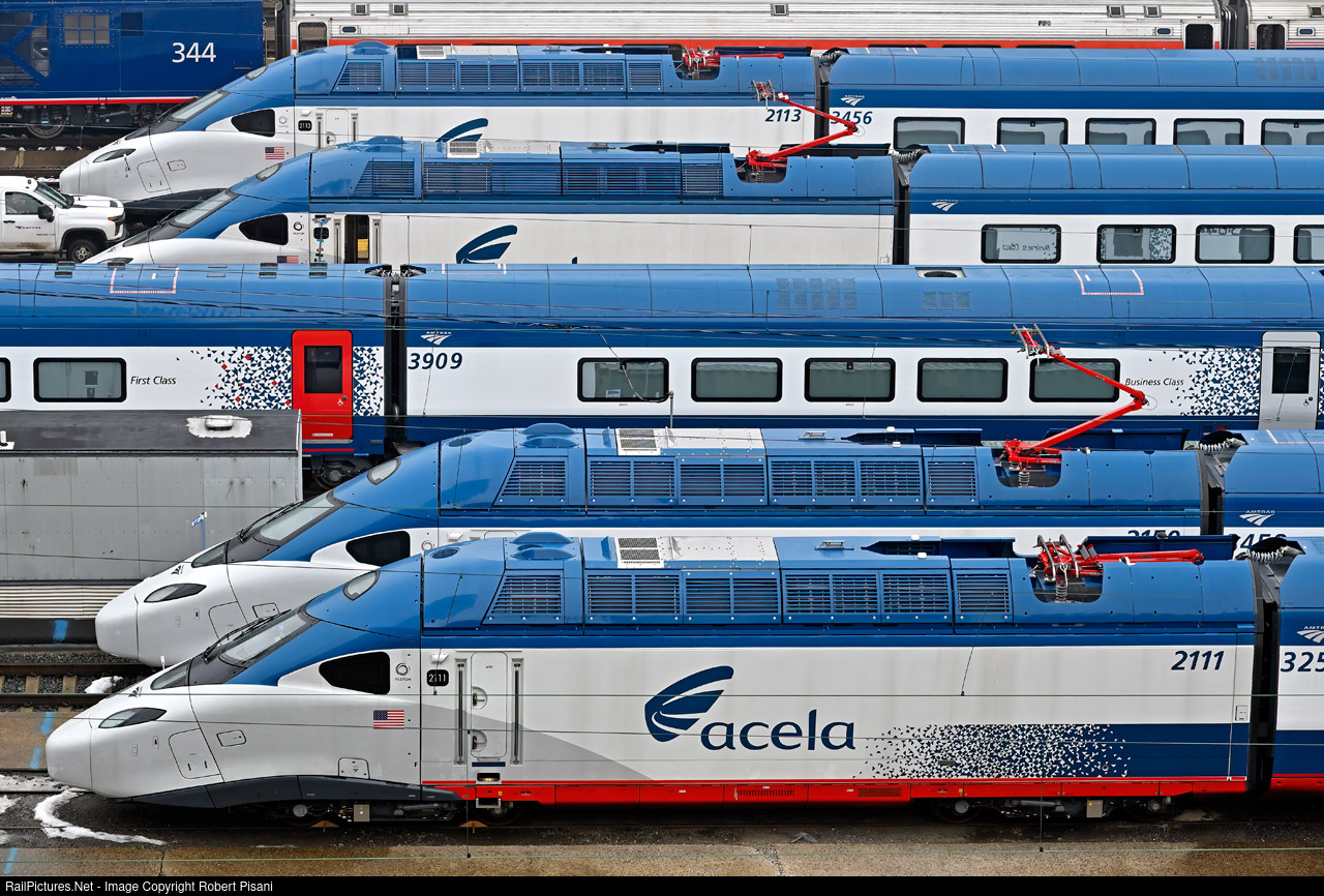 | All dressed up with nowhere to go, stored Avelia Liberty (Acela 2) train sets seem to multiply like rabbits at Amtrak's Penn Coach Yard. Maybe one day they'll actually enter service. |
