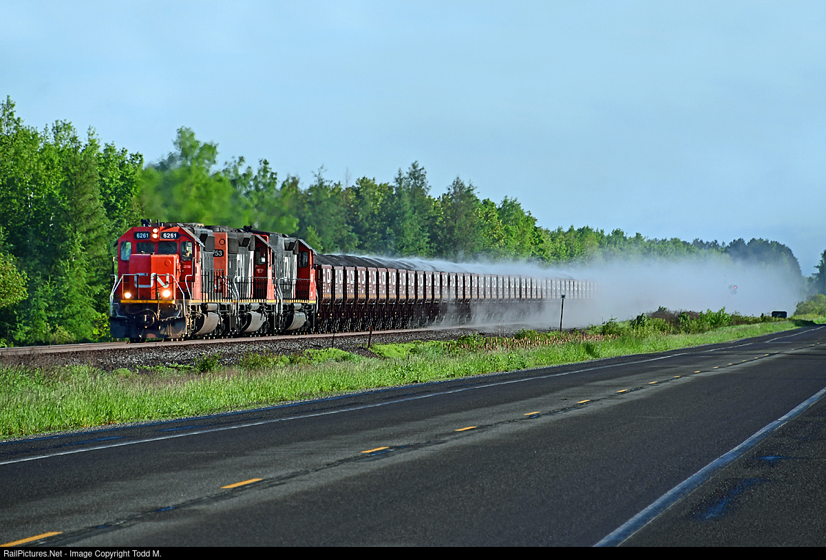 | It wasn't a cold morning, but the weather conditions were right to create the steam coming off the iron ore pellets that are loaded into part of CN's new fleet of cars as they head south for Proctor, MN. |
