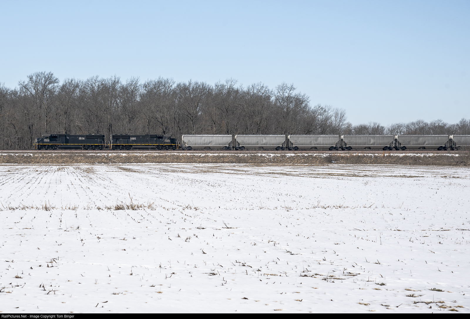 | CN local L544 with a train of empty hoppers to take to the Kaskaskia Regional Port District to reload with limestone needed for the smokestack scrubbers. |
