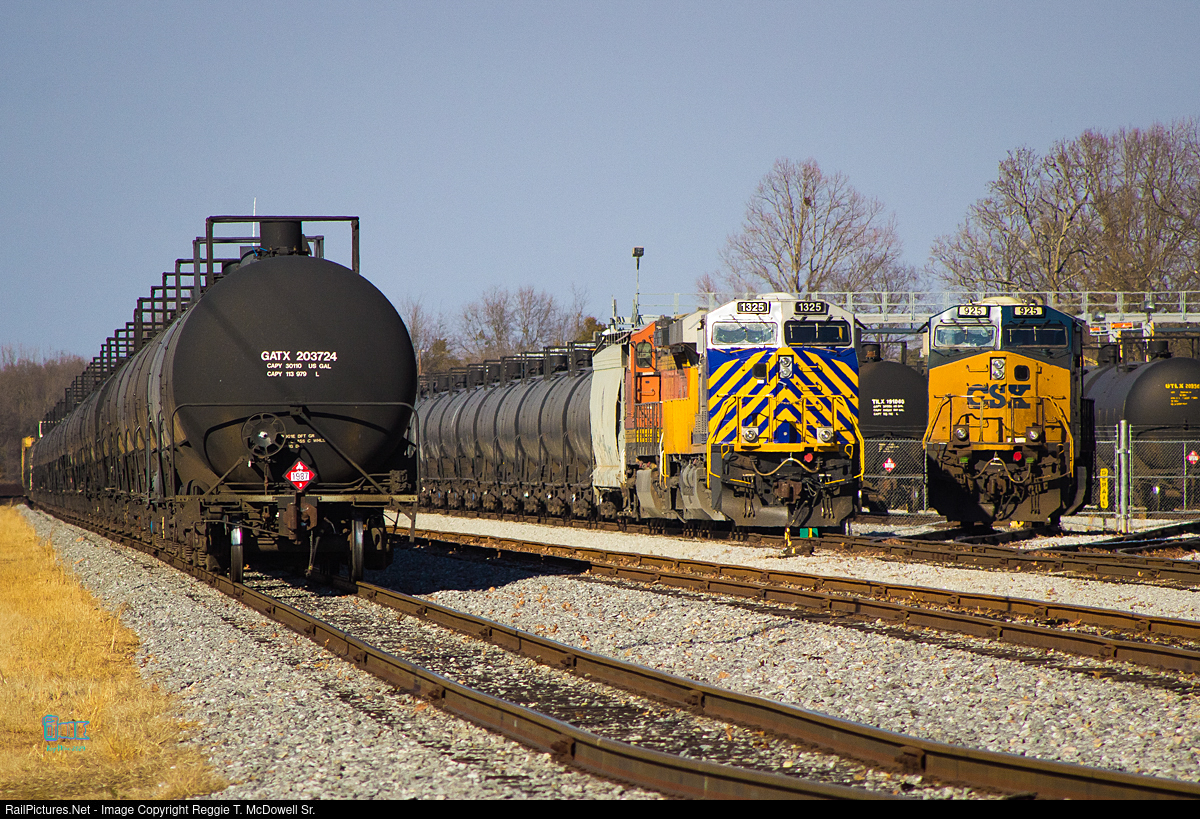 | CSX handed off a K449-05 Ethanol Train to the Greenville and Western for them to take to the Kinder Morgan Facility. Here, it the train seen broken up, and spotted by the Greenville and Western crew. |