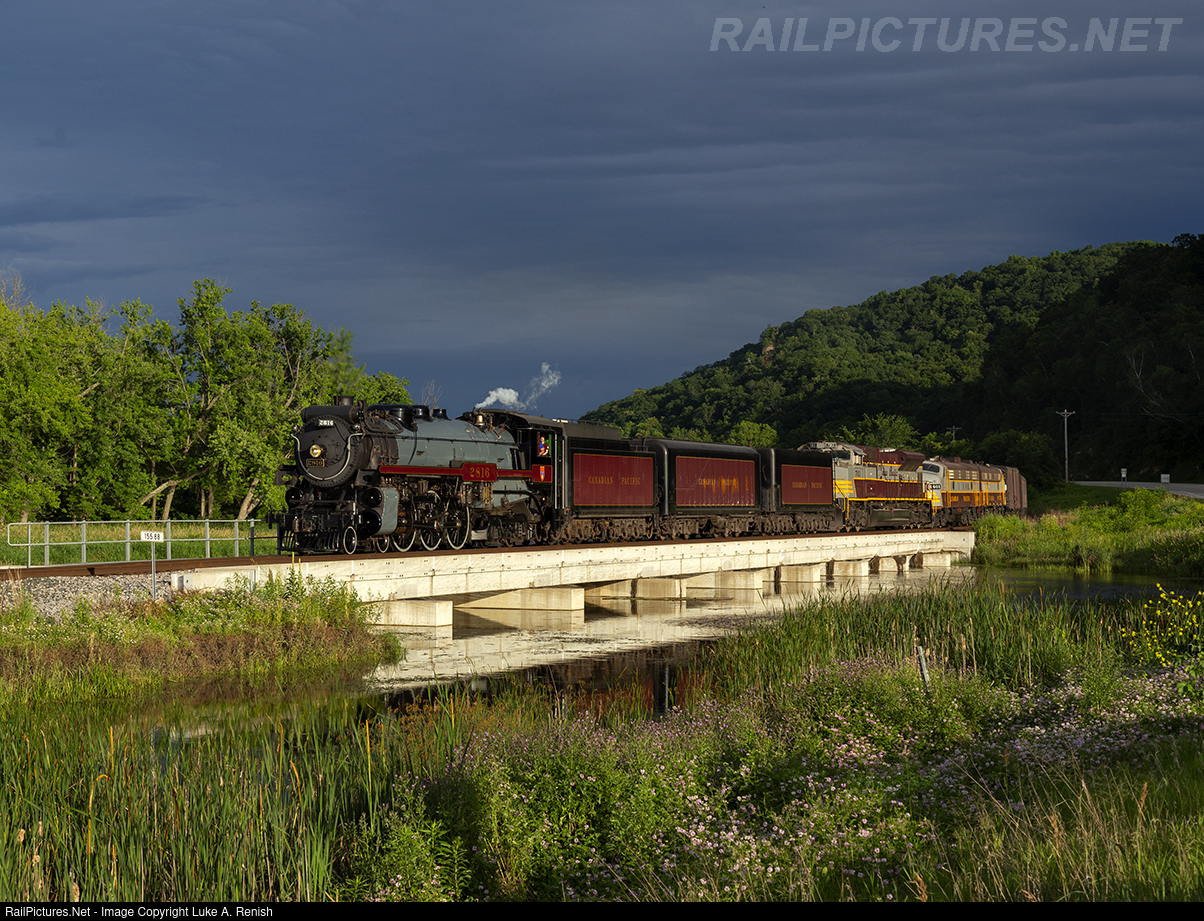 | After a tumultuous afternoon trying to get out of Iowa, the clouds opened up as CP 2816 heads north into La Crescent in stunning evening light. |