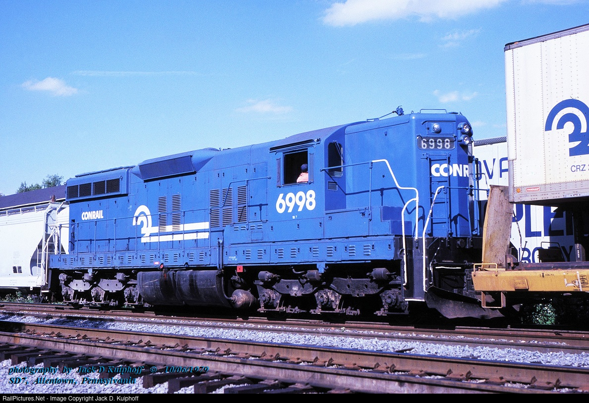 CR, Conrail 6998 one of only two SD7's on the roster, working at Allentown, Pennsylvania. October 6, 1979. Jack D Kuiphoff video © photo