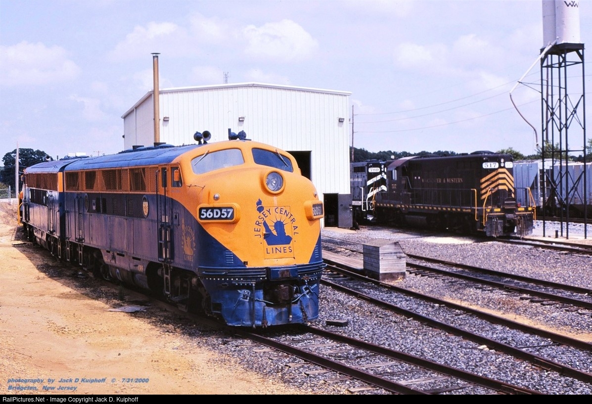 CNJ, Central Railroad of New Jersey, F3a 56D57, ex-BAR, Bangor and Aroostook 506A, sits at the Winchester Westerns engine terminal in Bridgeton, New Jersey. July 31, 2000. Jack D Kuiphoff © photo