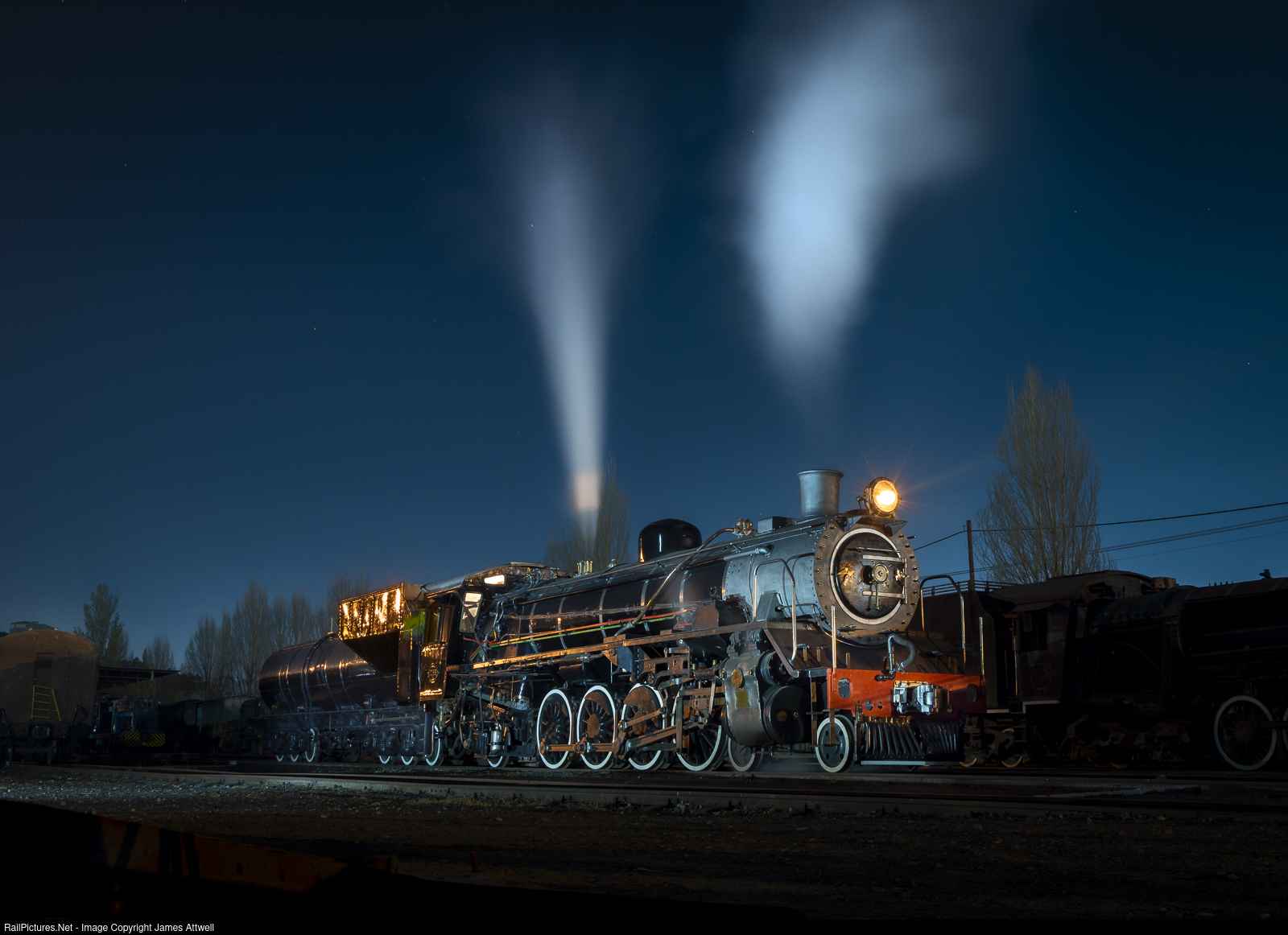 Beneath the dark of night, newly restored Class 19D No. 3366 simmers in the yard at Wonder Steam Trains, during Stimela Event's photographic 'Steam Sundowner'.