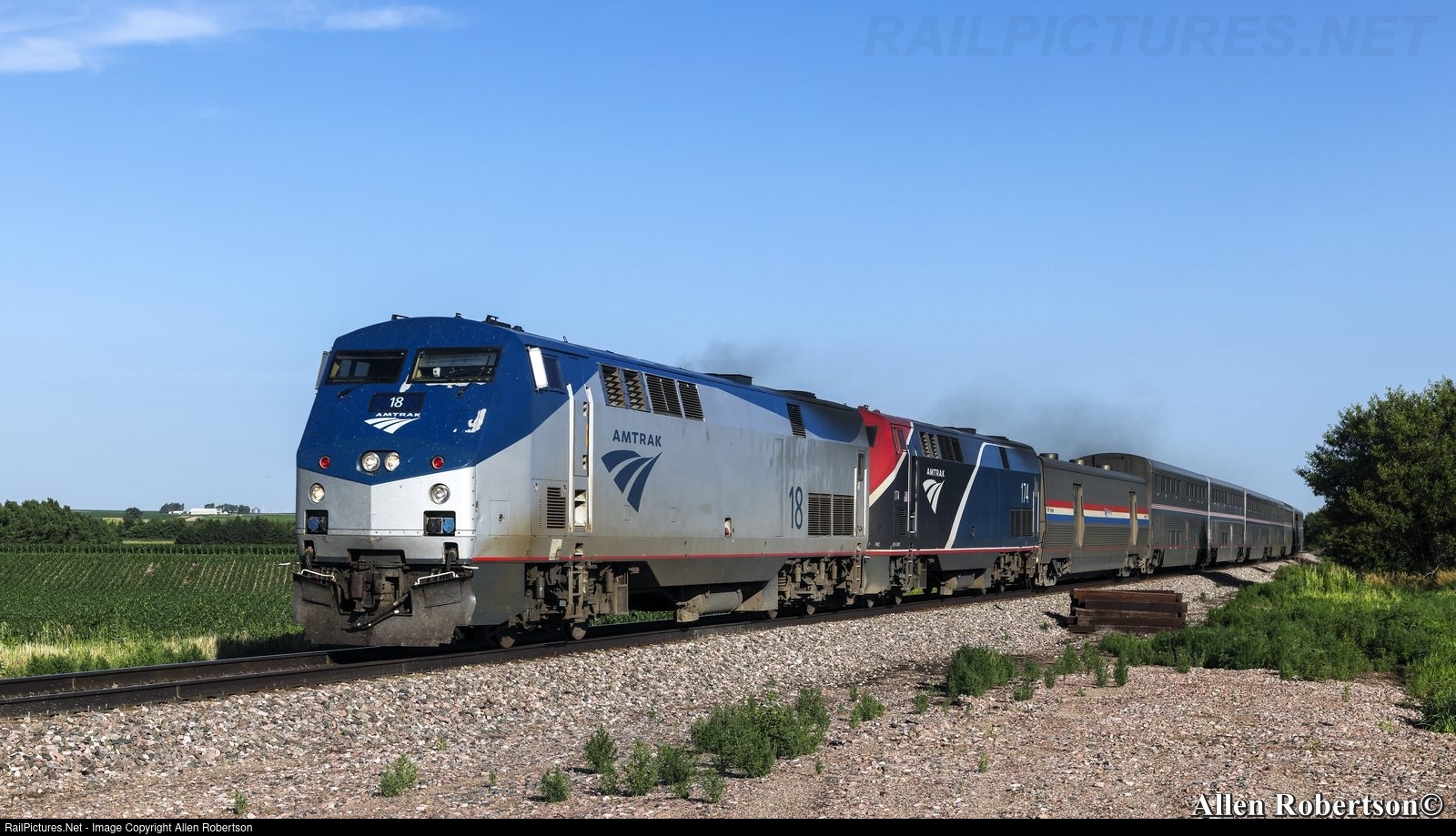 RailPictures.Net Photo: AMTK 18 Amtrak GE P42DC at Juniata, Nebraska by Allen Robertson
