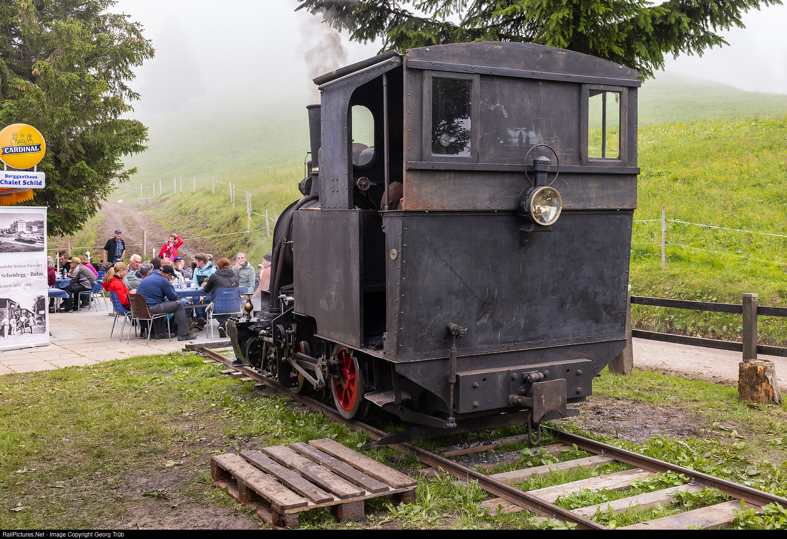 With the steam locomotive to the garden restaurant! The Rigi Kaltbad-Scheidegg Railway (RSB), also known as the Rigi-Scheidegg Railway or Kaltbad-Scheidegg Railway for short, is a former Swiss narrow-gauge railroad. In Rigi Kaltbad at 1423 m above sea level, it connected to the Vitznau-Rigi Railway built in 1871 and ran to Rigi Scheidegg at 1648 m above sea level. When it was completed, it was the highest adhesion railroad in Europe. The 6.7-kilometre metre-gauge line was opened in July 1874 from Rigi Kaltbad to Rigi First and around a year later to Rigi Scheidegg. The railroad was never economically viable, the line was closed in 1931 and the track was finally demolished in 1942. To mark the 150th anniversary of the opening of the Rigi-Scheidegg Railway, a 60-metre-long track was laid on the old route at Rigi First and steam operations were carried out on two days with Martin Horath's two-axle Ticino steam locomotive. The locomotive, built in 1889 by Arnold Jung in Jungenthal/Germany, was renamed "First" for this purpose and arrived just in front of the restaurant "Chalet Schild".